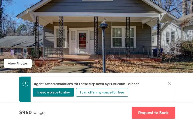 So, first of all, there are some fantastic people on AirBNB, and AirBNB is doing a lot of good. If you’re looking for a place this week in western NC or SC, there is a button to offer up a room or a campground for free, and a ton of people have risen to this challenge. So, there’s a lot more good than bad!