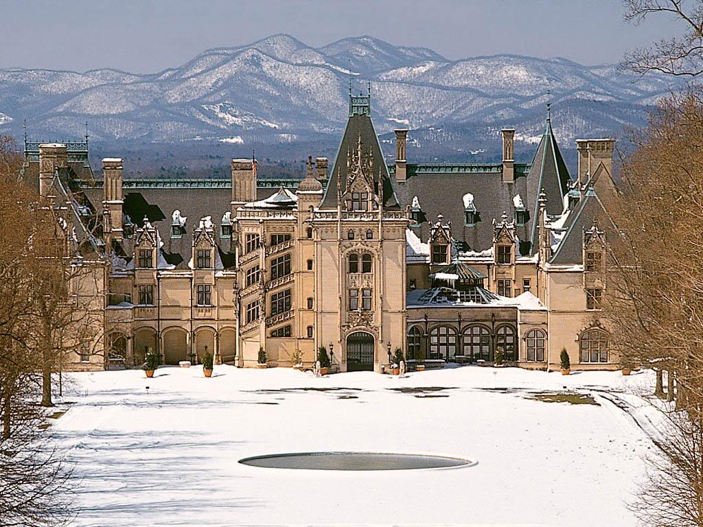 I did not take this photo, I borrowed it (attribution below)- it is a beautiful photo of the Biltmore Estate in winter.